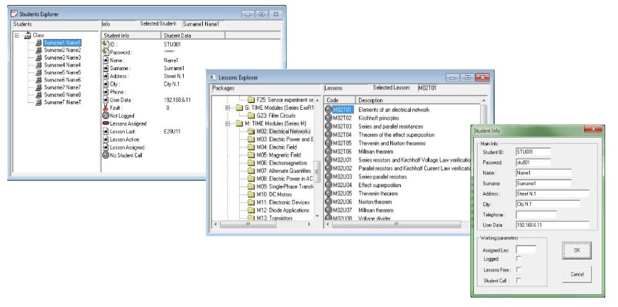 - Comunicación directa con cada estación de trabajo de los estudiantes (envío y recepción de mensajes, inserción de fallas en las estaciones de trabajo de los estudiantes,