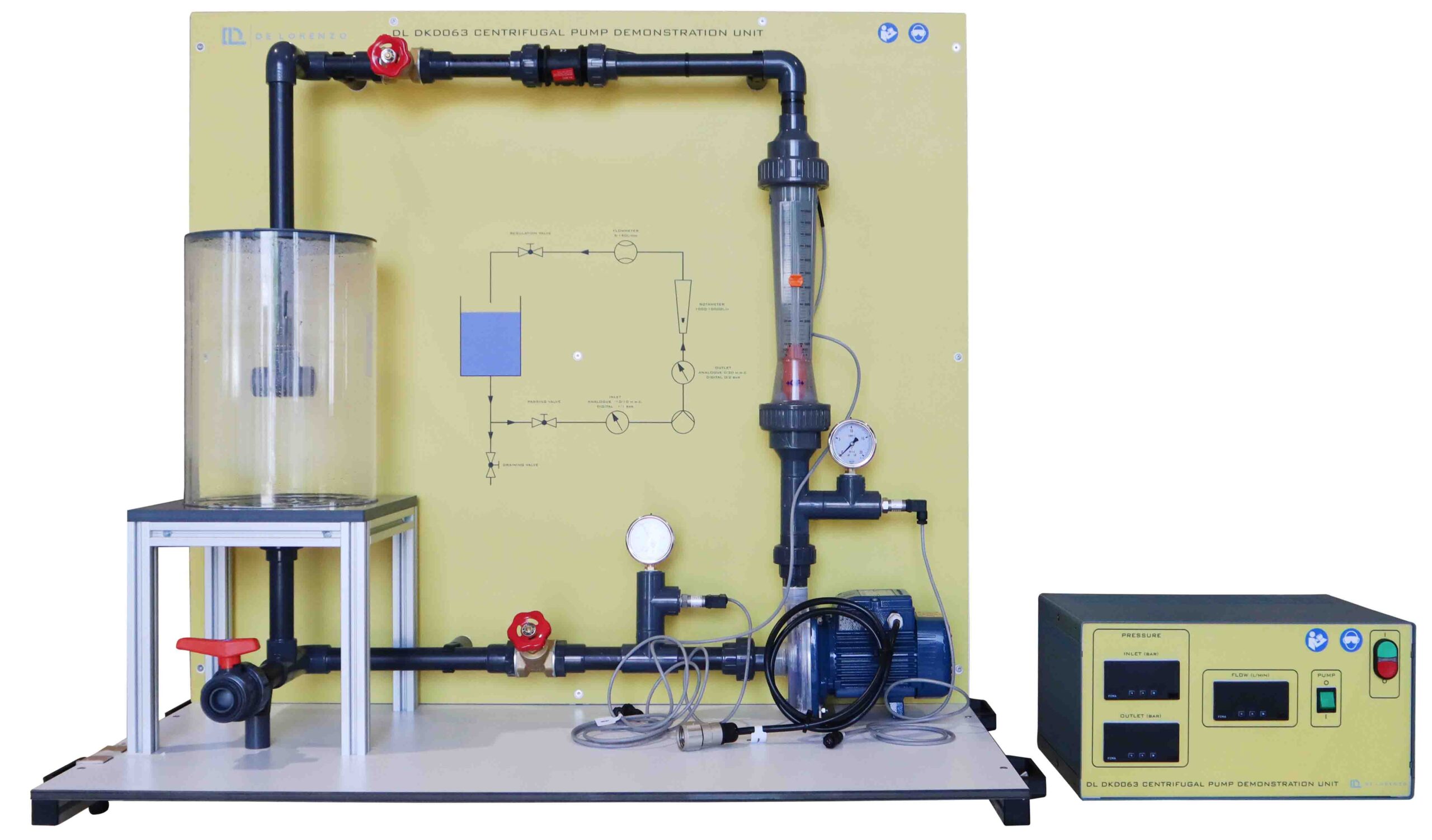 La unidad también permite la posibilidad de determinar la eficiencia de la capacidad de la bomba centrífuga.